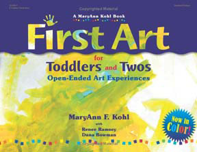 First Art contains over 80 art experiences for toddlers and 2-year-olds. Chapters are arranged by activities and list what materials are needed, what the adult needs to do, and how to get the toddler started. With First Art, we want to promote the idea that there is no “right” way to approach art, and that art is fun!